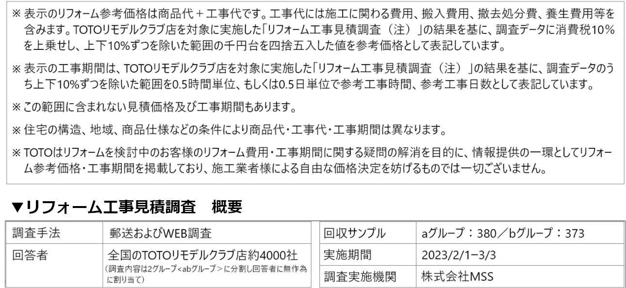 ※本ページの画像はイメージです。 ※参考価格・工事期間は、TOTOリモデルクラブ加盟のリフォーム店を対象に実施した「リフォーム工事見積調査」の結果をもとに算出しています。詳細はこちら